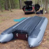 Надувное V-образное дно моторных лодок Юкона серии НДНД образованное комплектом продольных переборок и вклеенная в корпус надувной лодки, обеспечивает необходимую жесткость днища и минимальное гидродинамическое сопротивление, высокие скоростные характеристики. Это позволяют моторной лодке размером 320,350,380 быстро выходить на глиссирование с лодочным мотором мощность от 10 л.с.