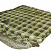Два типа ткани. Светлая — дышащая ткань, выводит влагу изнутри спальника. Темная — усиленная ткань с влагозащитой.